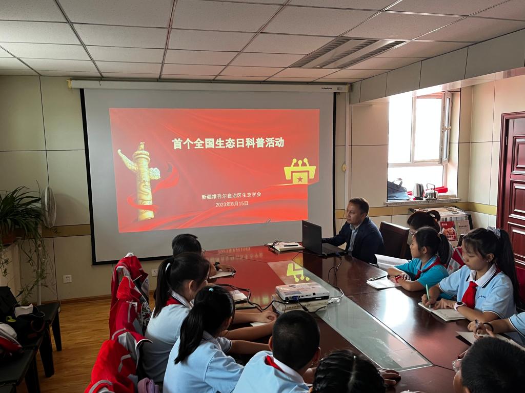 今年8月15日是首個全國生態日。為深入貫徹習近平生態文明思想,牢固樹立和踐行“綠水青山就是金山銀山”的理念,弘揚生態文明思想、厚植綠色發展理念,把建設美麗中國的“種子”根植于青少年心中,以科學普及激發青少年崇尚科學的興趣,促進青少年生態環境科學素質提升,由自治區生態環境廳、中國生態學學會科普工作委員會、自治區科協主辦,自治區環境保護科學研究院、新疆生態學會等承辦,在準噶爾荒漠綠洲交錯區科學觀測研究站開展了全國生態日科普宣傳活動。
