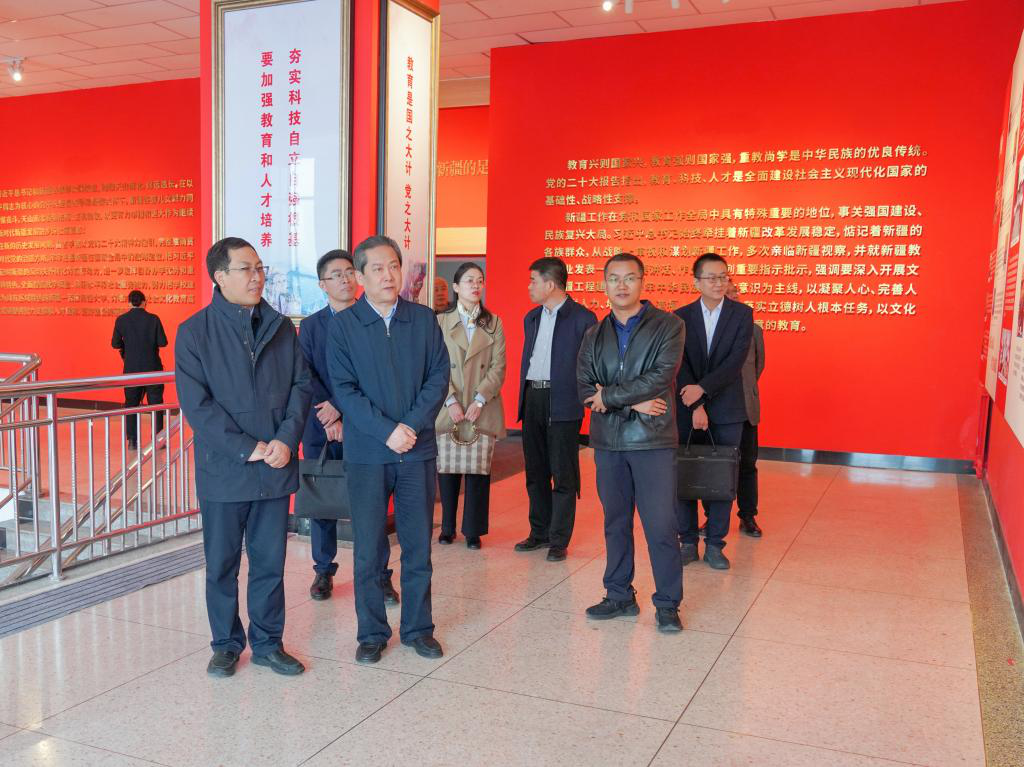 劉朋建一行重點考察了國家語言文字推廣基地(昌吉學(xué)院)、昌吉學(xué)院鑄牢中華民族共同體意識教育研學(xué)基地、圖書館朗讀設(shè)備、昌吉學(xué)院普通話水平測試站,參觀了習(xí)近平總書記在新疆的足跡展、中國共產(chǎn)黨精神譜系長廊、馬克思主義學(xué)院實訓(xùn)室、航空服務(wù)教育中心、航空器維修訓(xùn)練中心、準東研究院等。