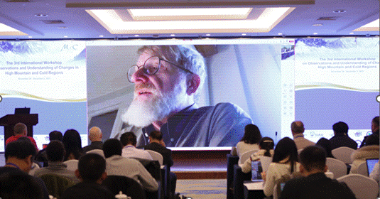 隨后,芬蘭科學(xué)和人文院院士馬庫·庫馬拉發(fā)表視頻致辭,他表示亞洲高山區(qū)和北極寒區(qū)關(guān)聯(lián)密切,此次會議為進一步梳理在該方面的科學(xué)進展提供了重要契機,他表示將在該領(lǐng)域持續(xù)加強同中國科學(xué)研究領(lǐng)域的合作;比利時皇家海外科學(xué)院院士菲利普·德馬耶爾線上為大會致辭,他指出在青藏高原、北極地區(qū),甚至在天山附近正在發(fā)生的變化,這不僅對“一帶一路”氣候變化敏感地區(qū)產(chǎn)生重要影響,而且還影響著世界經(jīng)濟及人類生活,因此建立一個密集而可靠的觀測網(wǎng)絡(luò)測量和了解全球氣候的空間和時間變化以及分析環(huán)境變化具有重要意義。