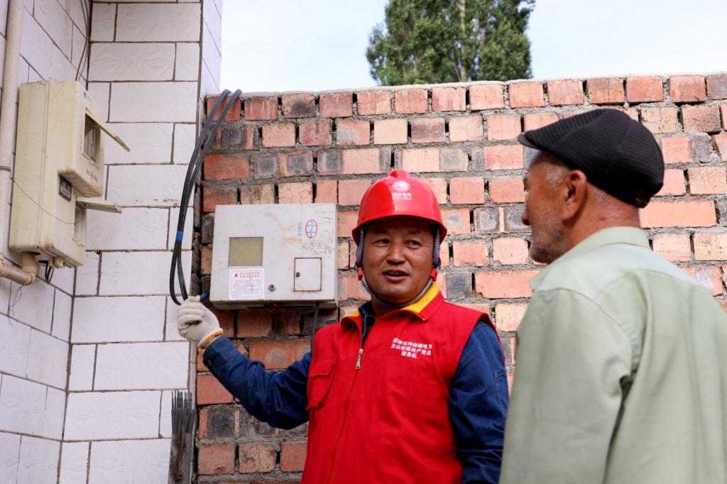 6月13日,學(xué)會(huì)會(huì)員單位昌吉供電公司電力科技工作者向村民哈斯木·哈哈爾講解用電安全常識(shí)