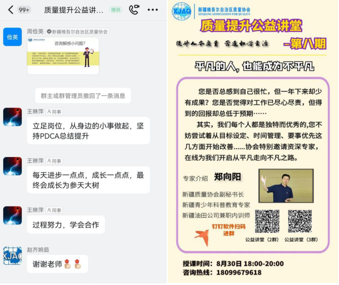 近年來在服務(wù)企業(yè)過程中,有不少質(zhì)量同仁反映“自己工作努力,但卻少有成果?嘗試改變,但效果卻不理想?”為更好的服務(wù)廣大質(zhì)量工作者,8月30日,新疆質(zhì)量協(xié)會(huì)特邀專家圍繞“平凡的人,也能成為不平凡”主題,以線上形式繼續(xù)開展質(zhì)量提升公益講堂系列活動(dòng)。