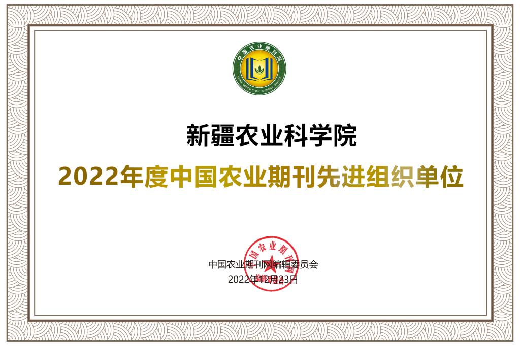 科協資助期刊《新疆農業科學》榮獲2022年度中國農業期刊“優秀團隊”等5項榮譽
