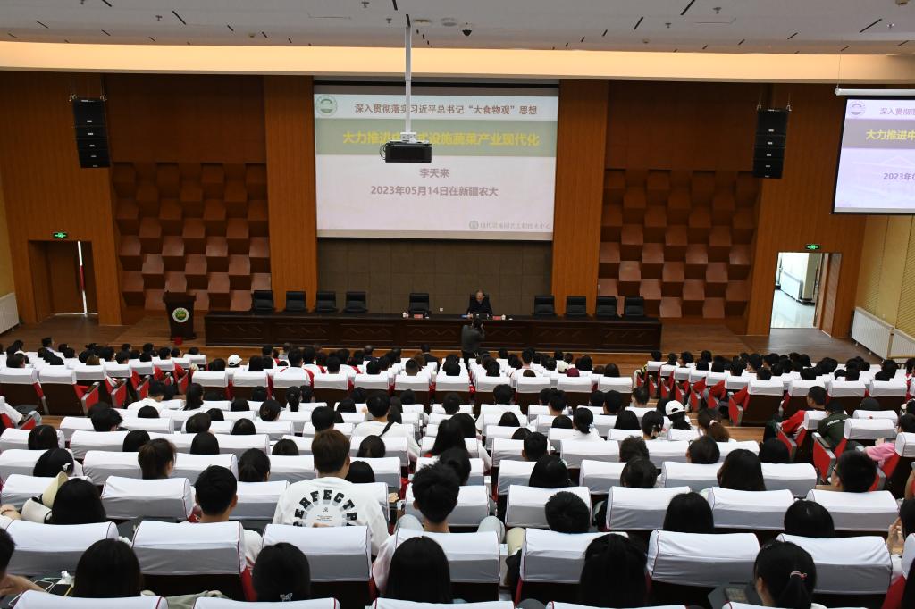 在全國上下扎實開展學習貫徹習近平新時代中國特色社會主義思想主題教育之際,新疆園藝學會聯合新疆農業大學園藝學院邀請中國工程院院士李天來,于5月14日上午在新疆農業大學舉行了學術報告和座談交流會,就我國和新疆的設施蔬菜產業的發展現狀、未來發展趨勢進行了報告和交流。報告會由新疆農業大學校長蔣平安主持,400余名園藝科技工作者和園藝專業學生參加了此次活動。