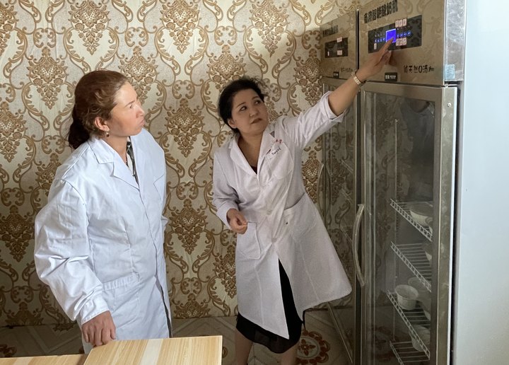 初夏的五月,英邁里村的巷道里飄來了一股清涼酸奶的醇香。5 月 21 日 至 22 日 ,新疆師范大學生命科學學院努爾古麗·熱合曼教授赴喀什地區(qū)莎車縣孜熱甫夏提鄉(xiāng)英邁里村農(nóng)戶吾舒爾· 哈孜家定點開展庭院老酸奶產(chǎn)業(yè)培育服務指導,現(xiàn)場調(diào)試新引進的牛奶殺菌鍋、酸奶發(fā)酵箱等設備,并對酸奶加工工藝進行技術講解。