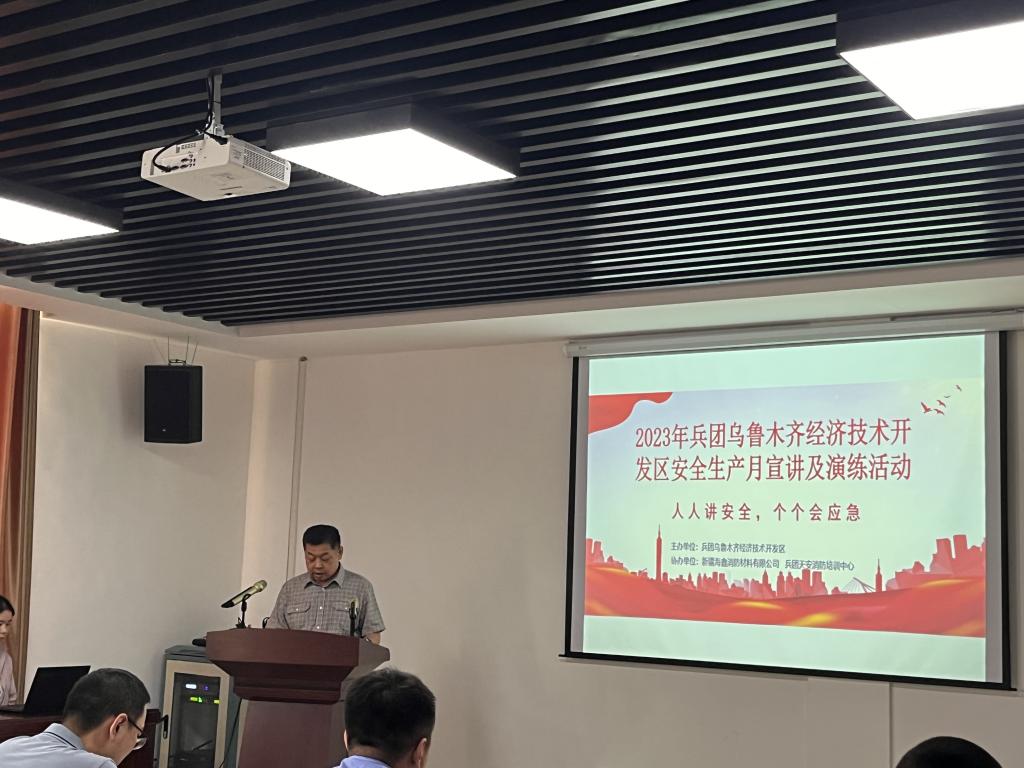 為扎實開展好第22個全國“安全生產月活動”,6月15日上午,2023年安全生產事故應急救援演練活動在兵團烏魯木齊經濟技術開發區舉辦。開發區黨工委委員、副主任張勇,開發區應急環保局局長李金剛,副局長張晗,興坪派出所副所長熱甫卡提,新疆消防協會副會長居立新,秘書長閆懷宣等出席應急演練活動。