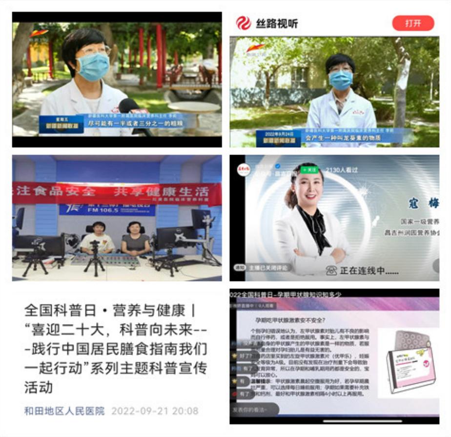 2022年全國科普日期間,新疆營養學會以《中國居民膳食指南(2022版)》核心準則為主題,結合新冠肺炎疫情防控期間居民膳食營養知識需求,積極組織專家、理事、會員、志愿者利用工作之便和業余時間,參與全國科普日新疆系列主題宣傳活動,深入開展了多場內容豐富、形式多樣的線上線下科普活動。