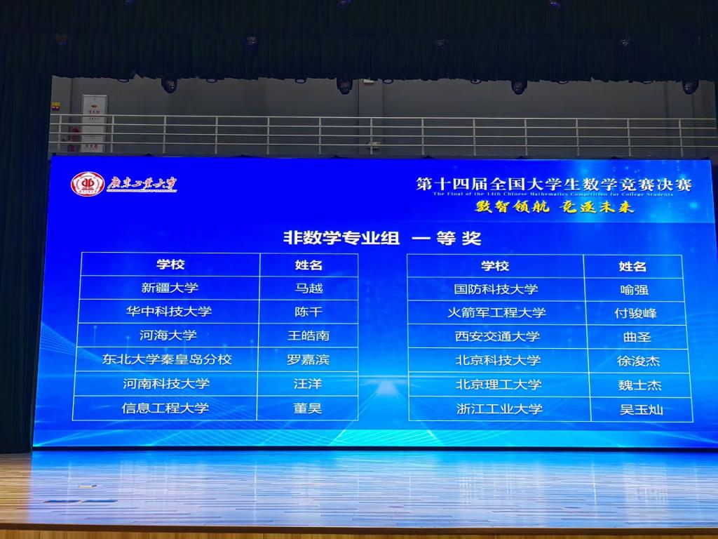 新疆賽區(qū)在第十四屆全國大學(xué)生數(shù)學(xué)競賽決賽中獲得一等獎(jiǎng)1項(xiàng),二等獎(jiǎng)1項(xiàng),三等獎(jiǎng)10項(xiàng)。本次決賽新疆賽區(qū)選手在全國1024所高校逾23萬名參賽者中脫穎而出躋身922名學(xué)生參加的決賽并獲得優(yōu)秀的成績。