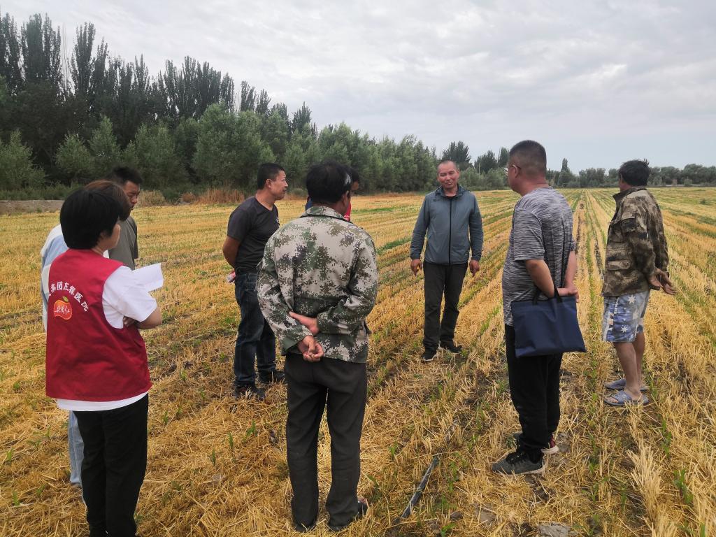為提升南疆復播玉米種植水平和種植效益,復播玉米免耕技術在各縣逐步試種推廣。復播玉米免耕技術是將傳統麥收獲后“澆水、施肥、翻耕、整地、覆膜+播種”多項作業改為“免耕+施肥+精量點播”一次機械化作業,減少農耗,既節約成本又提高資源利用。賽力汗·賽研究員對農民關注的復播玉米免耕技術進行了詳細的講解,并對玉米田里的地老虎等病害防治、中耕除草、水肥管理、玉米螟防治等關鍵技術進行了詳細的技術指導。王仙副研究員結合大豆田間生長現狀,就品種選擇、中耕除草、水肥管理、病蟲害防治、采收等方面的技術要點進行了指導。專家組還調研小麥生產情況,對當地主要種植小麥品種特性進行了介紹。