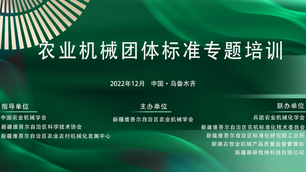 2022年12月15日,由新疆農(nóng)業(yè)機械學(xué)會主辦的“農(nóng)業(yè)機械團體標準專題培訓(xùn)活動”以線上形式成功舉辦。新疆農(nóng)業(yè)機械學(xué)會理事長、石河子大學(xué)陳學(xué)庚院士、新疆農(nóng)業(yè)機械學(xué)會秘書長馬俊貴出席活動并致辭。