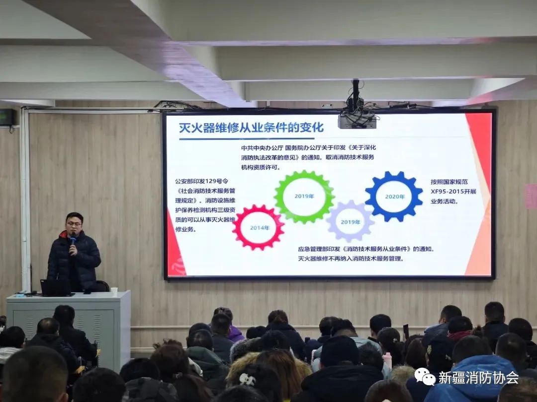為進一步提高我區(qū)滅火器維修人員業(yè)務素質(zhì)和業(yè)務能力,增強從業(yè)人員的法律法規(guī)意識,規(guī)范滅火器維修行業(yè)市場行為,2023年12月11日-14日,新疆消防協(xié)會舉辦了2023年度滅火器維修企業(yè)從業(yè)人員業(yè)務能力提升培訓班。協(xié)會專家?guī)斐蓡T、高級工程師李守斌和協(xié)會理事、資深專家蔡軍鳳作為主講嘉賓進行專題培訓。來自全區(qū)滅火器維修企業(yè)200余名從業(yè)人員參加了第一期培訓班。