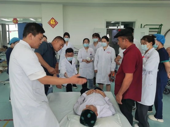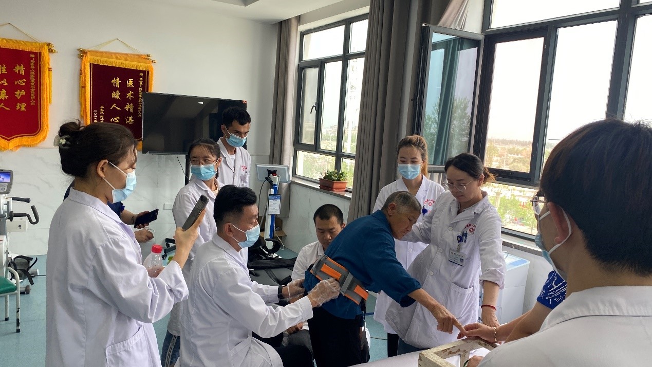 事先得到消息的老百姓早早在縣醫院康復科門前等候,免費測量血壓、查體、看片,“大娘,您慢慢講,有什么癥狀跟我說,我先幫您量下血壓。”張主任通過“拉家常式”的問診方式,耐心地詢問病情,通過仔細評估患者的異常模式、尋找問題的主線,制定康復目標和治療計劃,并圍繞目標和主線構建醫護治一體協同工作的康復治療方案及康復管理模式。