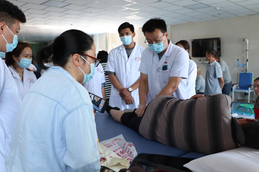 7月4日至5日,巴州科協邀請中國康復醫學會康復治療專業委員會中樞整合治療技術學組副組長、江蘇省老年醫院中樞整合診療中心主任、主任醫師張虔;巴州人民醫院康復科技師長、副主任技師鄭雪梅,康復科主治醫師王卿,來到焉耆縣醫院、和靜縣醫院為偏癱、骨科術后患者義診、康復指導等公益服務,讓老百姓在家門口“面對面”感受知名康復專家的暖心服務。