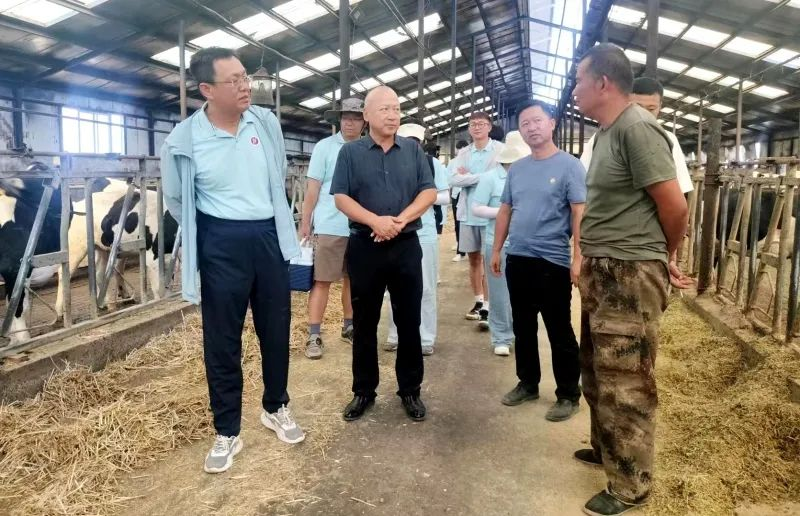張金生(右二)到養殖戶家里了解飼草料儲備情況