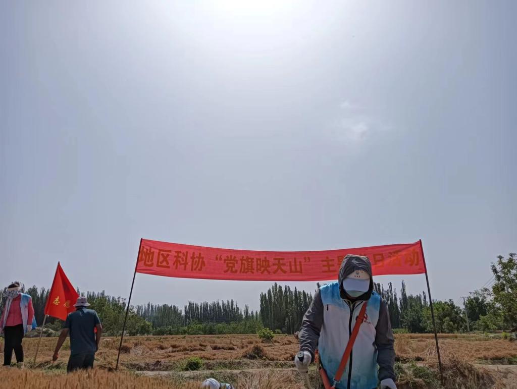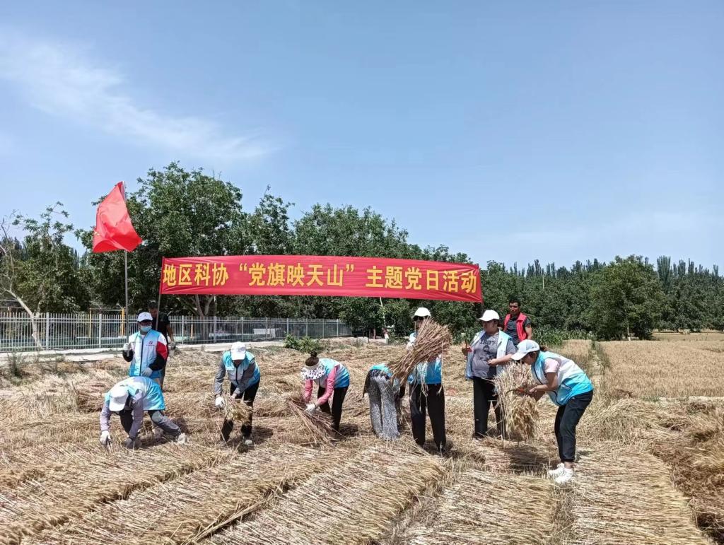 2023年6月16日,和田地區科協黨支部組織黨員干部到和田市肖爾巴鄉阿克塔什村開展“黨旗映天山·助農收麥子”主題黨日活動。