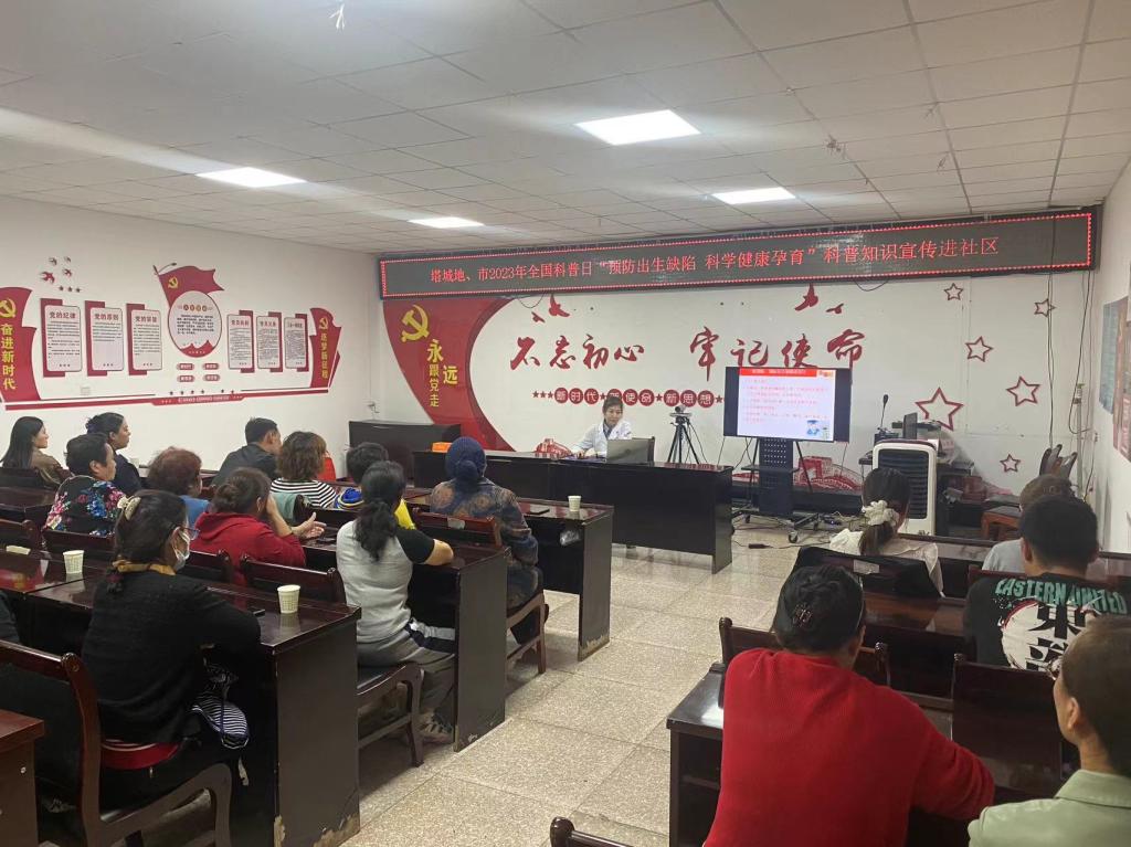 9月12日下午,塔城地、市科協聯合地、市婦幼保健院在杜別克街道光明社區開展2023年全國科普日“預防出生缺陷 科學健康孕育”科普進社區活動。