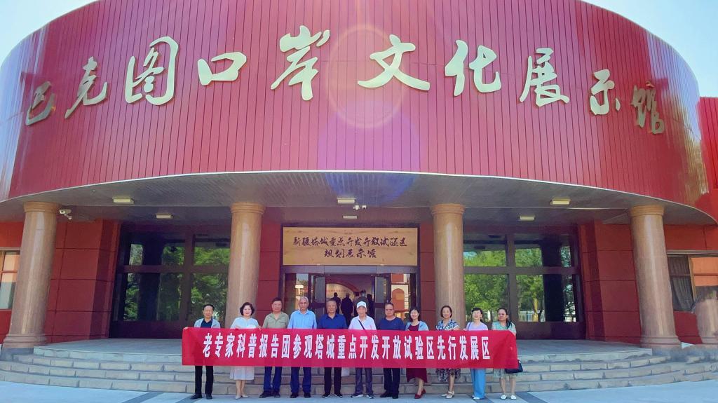 在新疆塔城開發開放試驗區規劃展示館,講解員詳細講解了試驗區的總體規劃及目前入駐企業和項目建設情況。之后,老專家們來到邊民互市絲路文化商品城,實地感受現代化貿易平臺給我們的生活帶來的巨大便利。