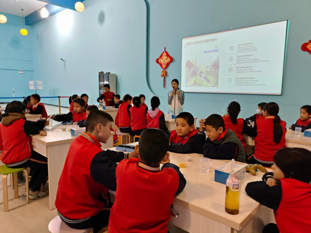 2024年3月22日,和田科技館開展了一場以“解密糖世界——測量不同水果含糖量”為主題的館內科學小課堂活動。和田市第二小學的科學老師帶領25名五年級學生參與了此次活動。