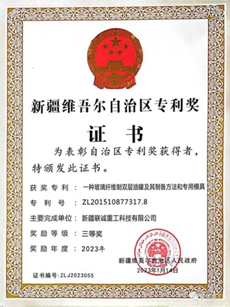 近期,自治區召開市場監督管理工作會議,會議對第五屆新疆專利獎榮獲單位和個人進行了表彰,共有56個專利項目獲獎。巴州“科創中國”入駐企業——新疆聯誠重工科技有限公司的“一種玻璃纖維制雙層油罐及其制備方法和專用模具”專利項目榮獲新疆維吾爾自治區專利獎三等獎,是巴州唯一一家獲得此次獎項的企業。新疆維吾爾自治區專利獎是為大力推進創新驅動發展戰略和知識產權戰略,提高創新主體及社會公眾發明創造積極性,從2013年起,自治區專利獎評選啟動。