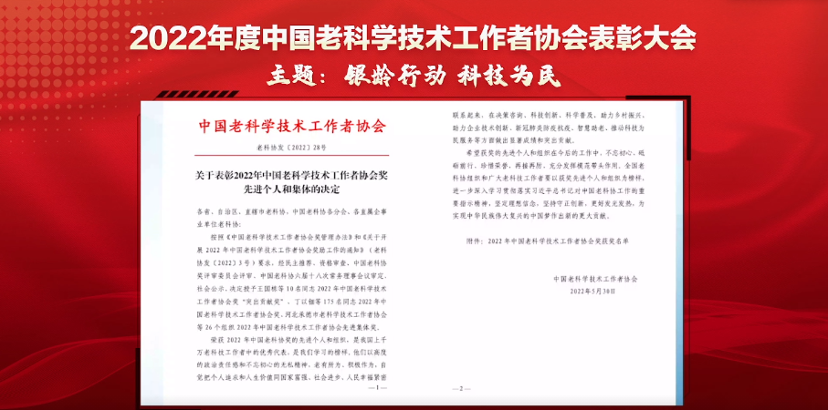 喜報(bào)!李鵬榮獲2022年中國(guó)老科協(xié)“突出貢獻(xiàn)獎(jiǎng)”