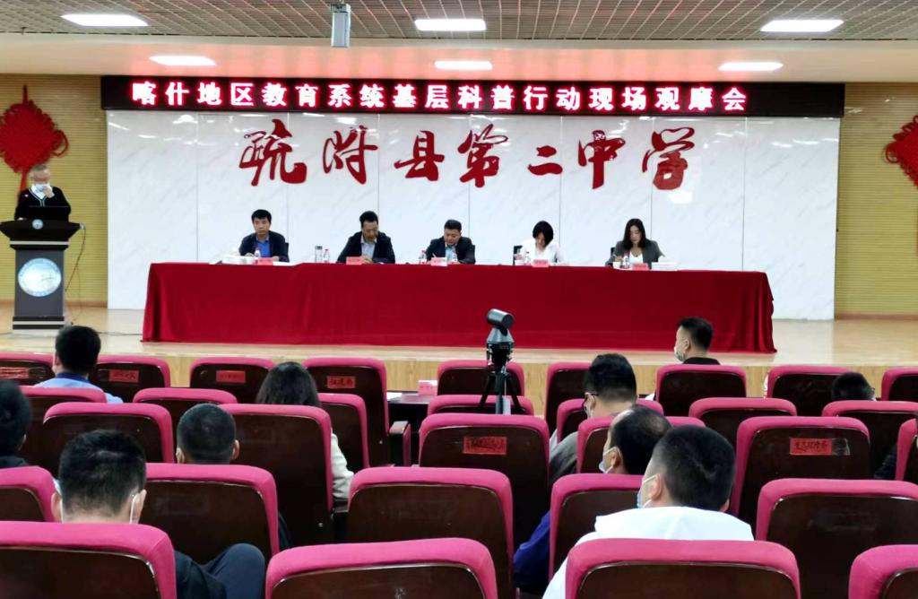 5月23日,在喀什地區教育系統基層科普行動現場觀摩會上,喀什地區科協舉辦了全區校園科普e站管理宣傳員培訓班。培訓班以現場加視頻形式舉行,主會場設在疏附縣第二中學。各縣市教育局分管校園科普e站領導、信息中心負責人、師生代表80人現場參加培訓。全區各學校校園科普e站管理宣傳員1420人通過視頻形式參加培訓。