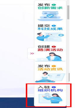5.點擊左側導航欄“組織機構”,進入新頁面后從右側滾動側邊欄點擊入駐組織機構按鈕。