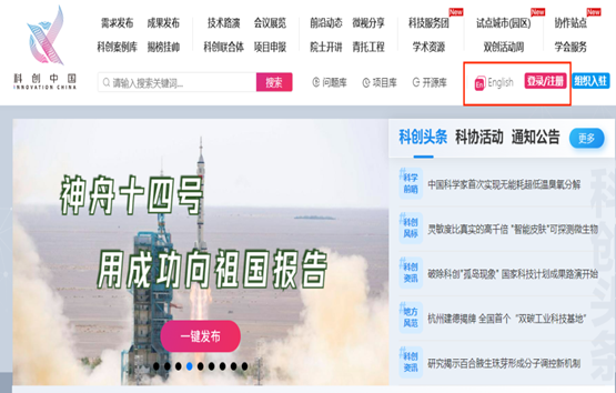 1.輸入網址www.kczg.org.cn,或搜索“科創中國科技經濟融通平臺”進入平臺首頁。