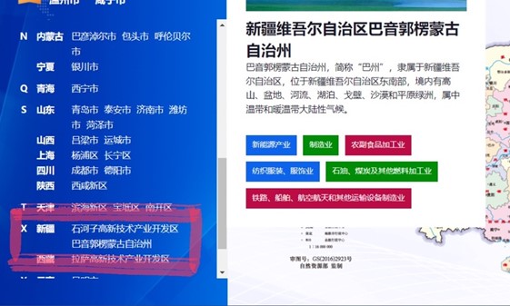 4.登錄之后從主頁上方試點城市(園區)進入新疆維吾爾自治區 巴音郭楞蒙古自治州。