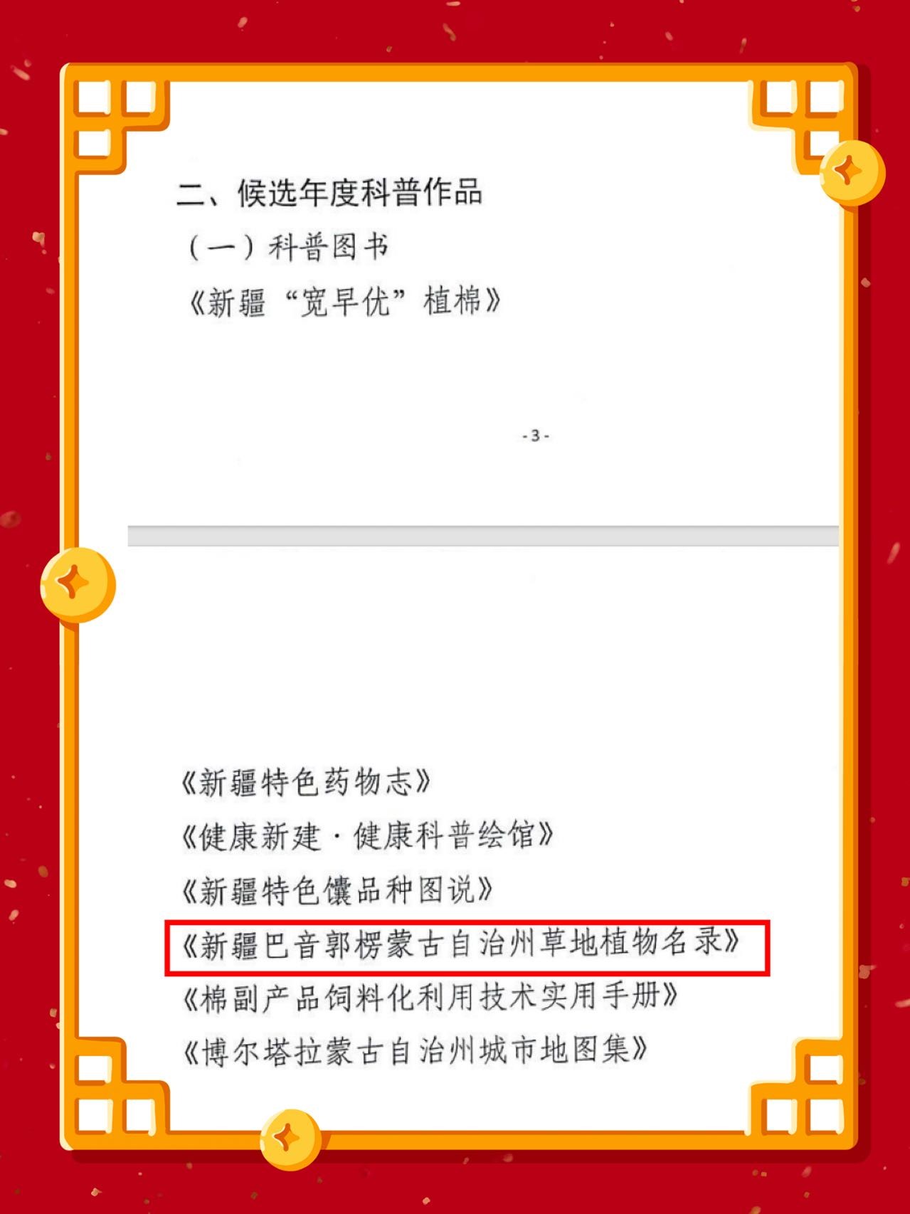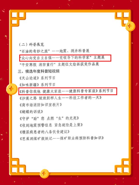 二是堅(jiān)持標(biāo)準(zhǔn)、擇優(yōu)推薦。突出科普人物、科普作品、科普短視頻的示范引領(lǐng)作用,巴州科協(xié)在推薦“典贊·2023科普中國(guó)”活動(dòng)中堅(jiān)持標(biāo)準(zhǔn),公平、公正,擇優(yōu)推薦,面向社會(huì)公示無(wú)異議后,將申報(bào)材料、圖書等相關(guān)推薦材料報(bào)送至新疆科協(xié)。