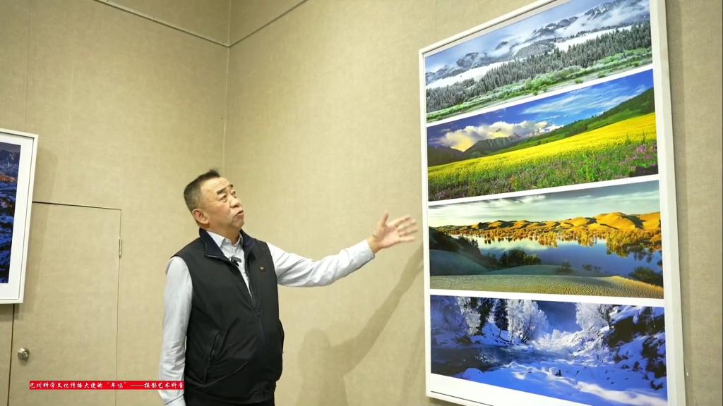 這幅作品圍繞“絲路山水 壯美巴州”為主題,展示了巴州四季變化之美,從鞏乃斯林場初春的雪景,到鞏乃斯阿爾先溝夏季的花海,再到尉犁縣葫蘆島胡楊林金黃的秋景,最后到鞏乃斯銀裝素裹的冬季。一年四季交替更迭,正是這些奇妙的變化,幻化出無處不在的美。巴州科學文化傳播大使、巴州攝影家協會主席馬立新講述著他的攝影故事。