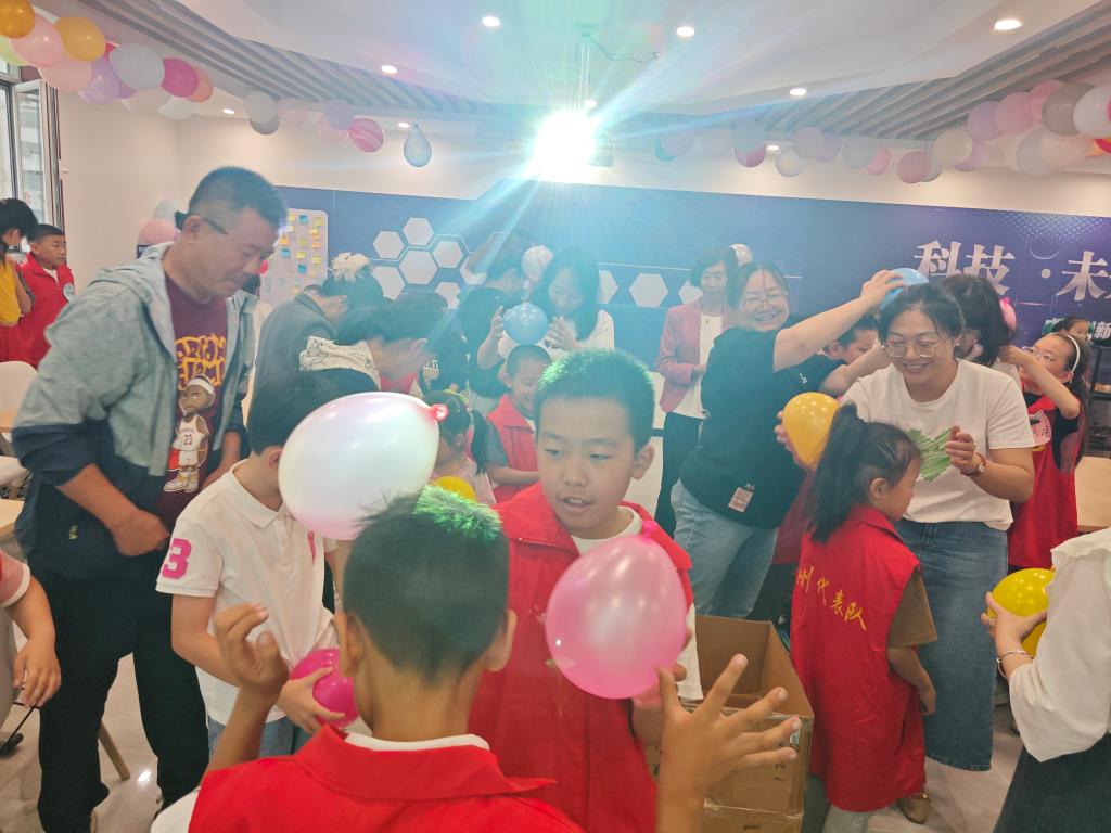 活動當天還設置了靜電氣球挑戰和無人機表演,青少年和家長相互幫助,使氣球摩擦產生靜電,通過趣味小游戲學習物體帶電后產生的靜電力。