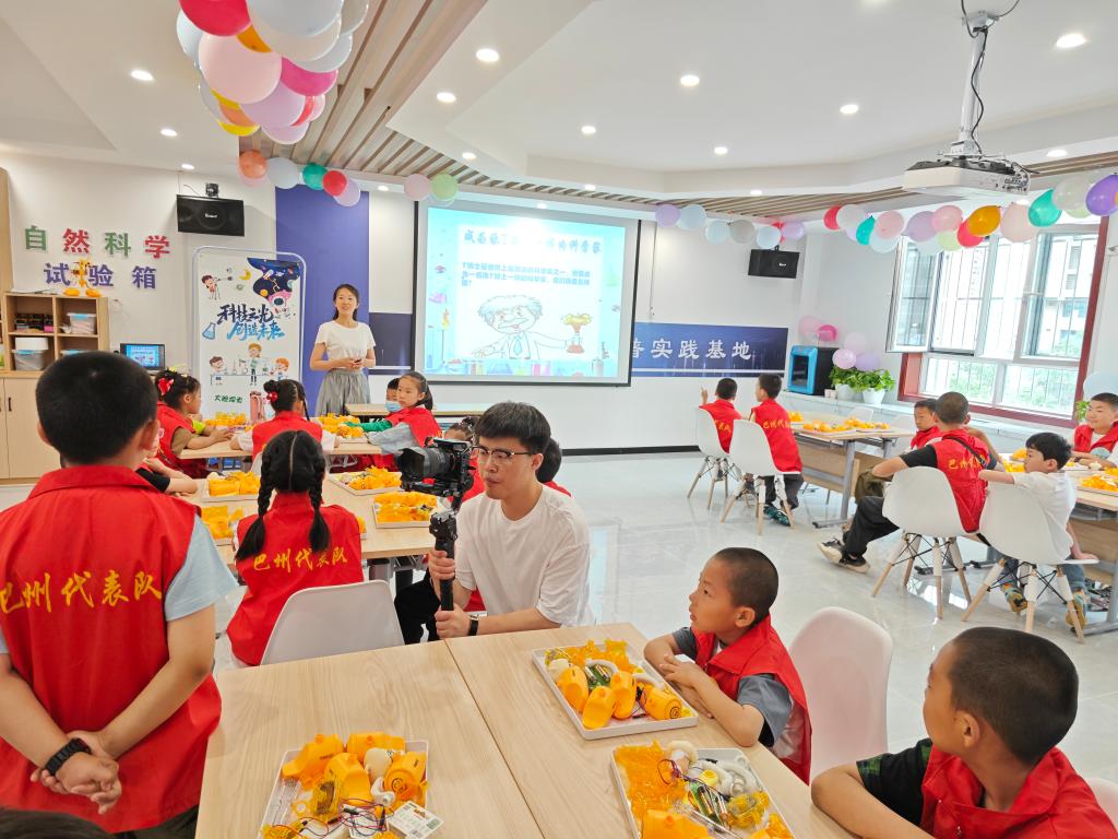 宇航員、望遠鏡、量杯、氣球……,6月1日,巴州青少年科普實踐基地裝扮一新,處處洋溢著科技與歡樂的氛圍,30名青少年及家長齊聚一堂,共赴一場科技之約。