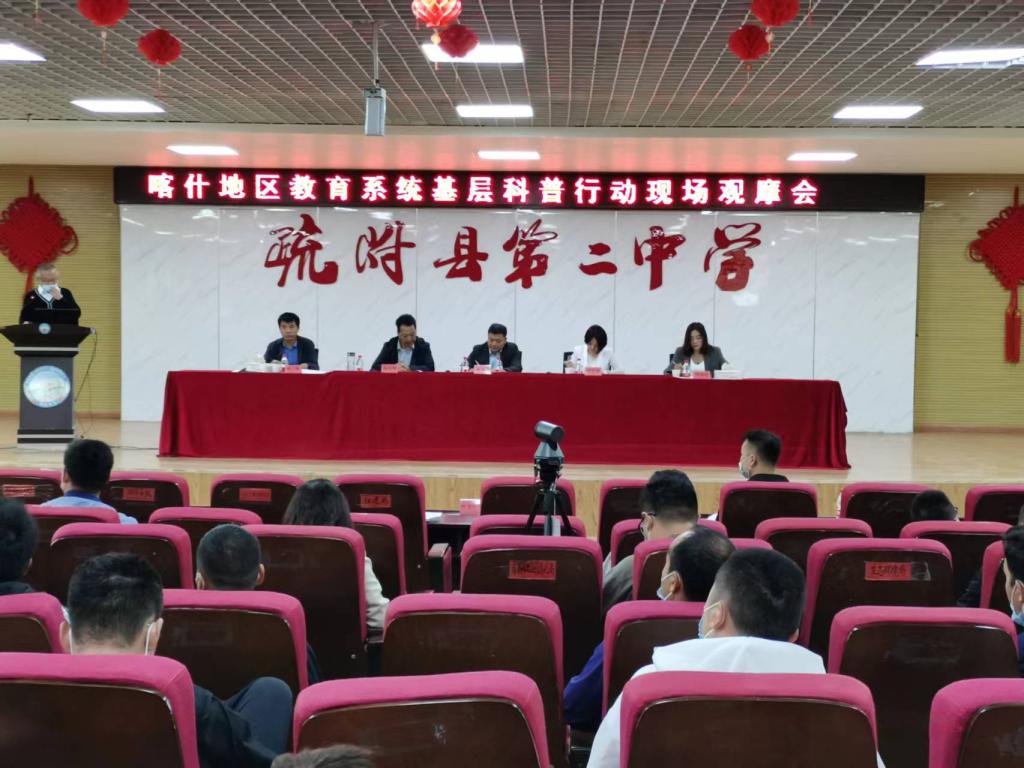 5月22至23日,喀什地區科協、地區教育局聯合喀什地區文聯、中國移動喀什分公司、中國電信喀什分公司、疏附縣教育局、喀什市教育局開展了兩天的基層科普行動現場觀摩會。各縣(市)教育局領導、師生代表共90人參加此次觀摩現場會??κ驳貐^行署副專員、教育工委副書記唐曉冰親臨現場指導。