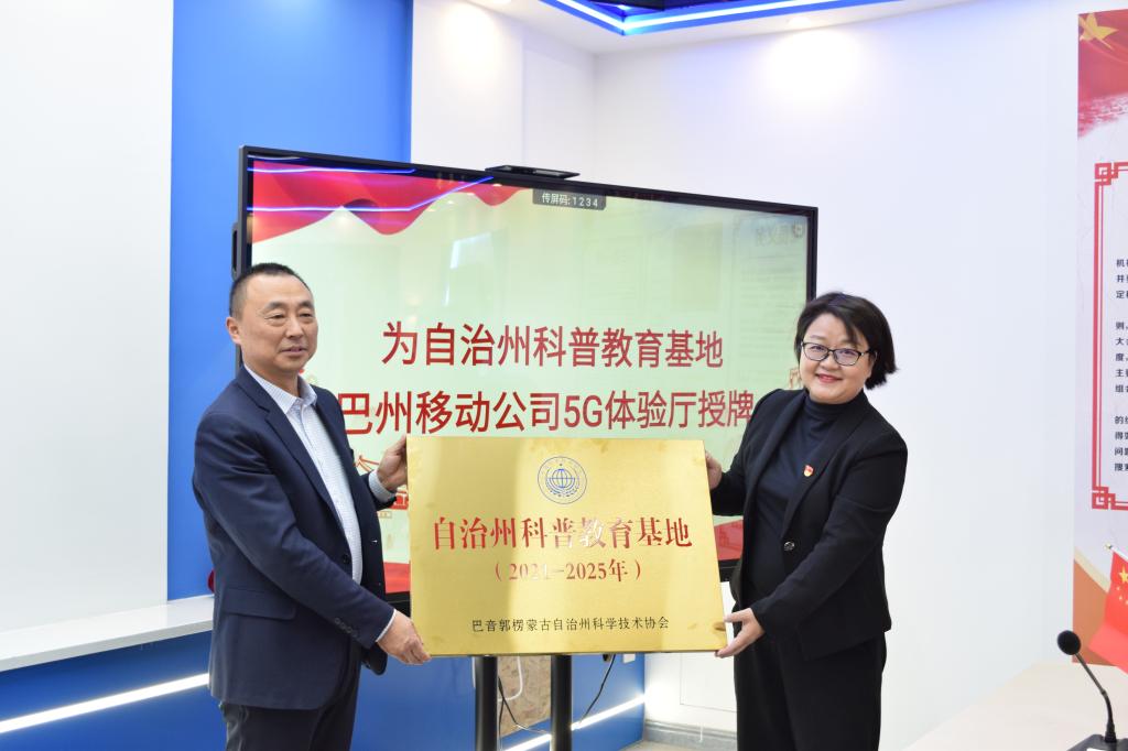 儀式上,巴州科協還為巴州移動公司5G體驗廳進行了“2021-2025年自治州科普教育基地”的授牌。巴州移動公司5G體驗廳圍繞“5G+4G”“5G+AICDE”“5G+生態”“5G+X應用體驗”,立體化、生態化展現5G最新創新成果,展示5G+如何賦能千行百業。在巴州移動公司5G體驗廳可以看到全息舞臺、5G實時渲染、5G云端AI數字機器人等多款5G最新應用,讓廣大群眾體驗到5G時代美好生活。2023年巴州科協對自治州19家科普教育基地進行了補充認定,巴州移動公司5G體驗廳被認定為“2021-2025年自治州科普教育基地”。