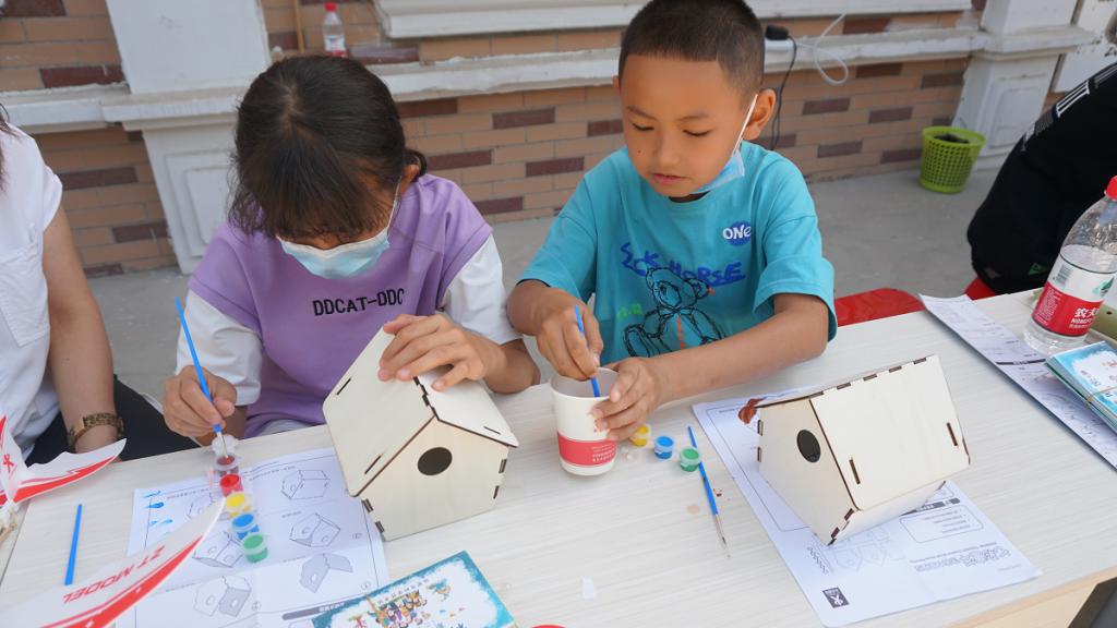 活動現場,市科協工作人員向小朋友們展示了舞蹈機器人、“小寶”機器人、機甲大師坦克等科技產品,圍繞科技原理,講解聲、光、電、編程、人工智能等科技知識;工作人員現場指導家長和小朋友制作橡筋動力飛機模型和涂裝木屋,讓青少年在科技實踐中感受科技的魅力,在快樂中成長,獲得了家長們的一致好評。此次活動,受益兒童60余名,工作人員向小朋友們發放了科普知識系列連環畫100余冊。