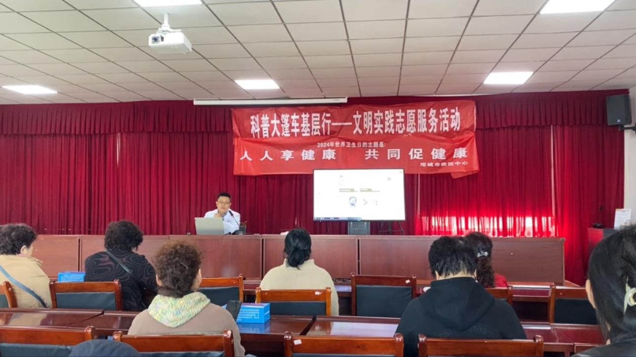 4月7日是世界衛(wèi)生日,旨在引起世界各國(guó)人民對(duì)衛(wèi)生、健康工作的關(guān)注,強(qiáng)調(diào)健康對(duì)于勞動(dòng)創(chuàng)造和幸福生活的重要性。今年我國(guó)的宣傳主題是“人人享健康 共同促健康”。世界衛(wèi)生日當(dāng)天,塔城地、市科協(xié)聯(lián)合塔城市疾控中心走進(jìn)杜別克街道花園社區(qū)開(kāi)展健康科普講座。