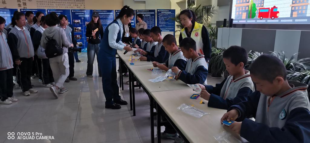 活動現場,庫爾勒市科技館充分利用展廳特色展項資源,通過防震減災有獎知識問答、觀看防震減災視頻、風向標小制作、地震小屋體驗、地震自救知識等一系列主題科普活動,將安全防災減災宣傳教育融入展廳觀覽與日常生活,為廣大師生普及科學防震減災知識。