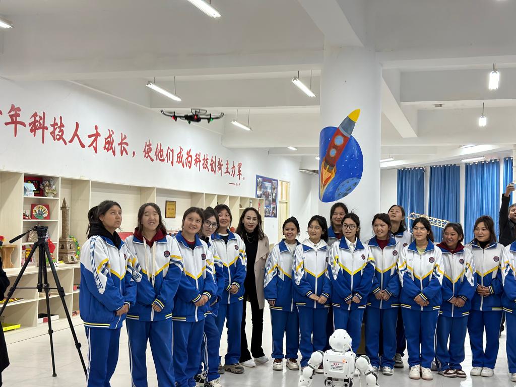 和田地區青少年科技教育活動中心主任海日古麗·艾爾肯參觀了學校科技活動室,對其內部設施建設、各類科技活動表示了肯定。墨玉縣第五中學在各類科技活動中表現突出、硬件設施完備、師資配備達標,符合地區青少年科技活動特色學校的評選要求,授予了“和田地區青少年科技活動特色學校”榮譽稱號,并舉行授牌、捐贈儀式,捐贈科普物資包括陸海空運動科技模型15個,“未來之星S”初級遙控平跑車6個、安全行車比賽賽道1套。