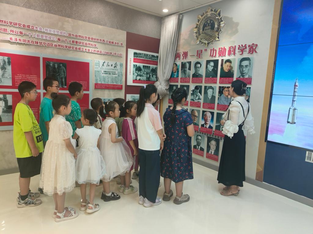 首先,由州科協講解員老師向同學們講解“眾心向黨 自立自強——黨領導下的科學家”主題展廳。展廳分為愛國、創新、求實、協同、奉獻、育人等六大板塊科學家精神,講解員老師耐心細致、循循善誘地講述了無線電專家李強、爆炸力學與核試驗工程專家林俊德、雜交水稻之父袁隆平和天眼之父南仁東等4位科學家的故事。