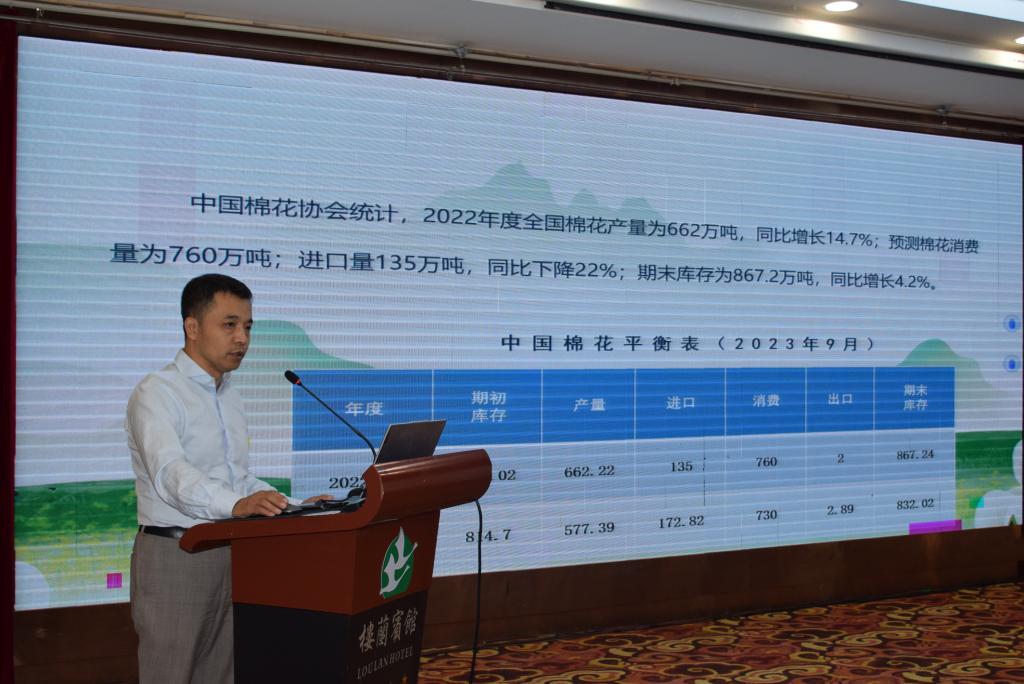 9月12日,中華全國供銷合作總社農(nóng)資與棉麻局副局長、 一級巡視員,中國棉花協(xié)會常務(wù)副會長兼秘書長王建紅作《中國棉業(yè)可持續(xù)發(fā)展實踐與探索》主旨報告