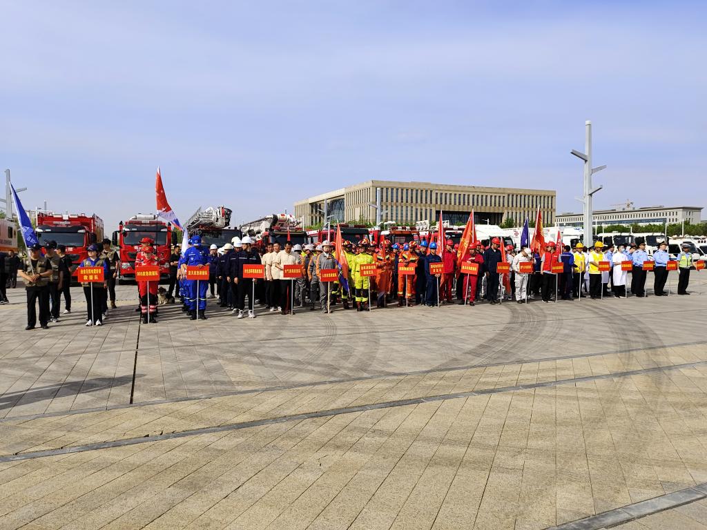 在活動現場,市消防救援支隊、油田消防搶險救援支隊、武警支隊等20支應急救援隊伍在科技館室外廣場開展了集結演練,展示了部分應急救援裝備。市政府黨組成員、副市長阿合買提·巴拉提向獨山子區金山路街道第一社區頒發2021年度全國綜合減災示范社區牌匾,康城小學師生和迎賓路街道110余名居民現場觀摩了應急演練,學習了防災減災科普知識。