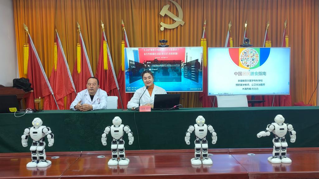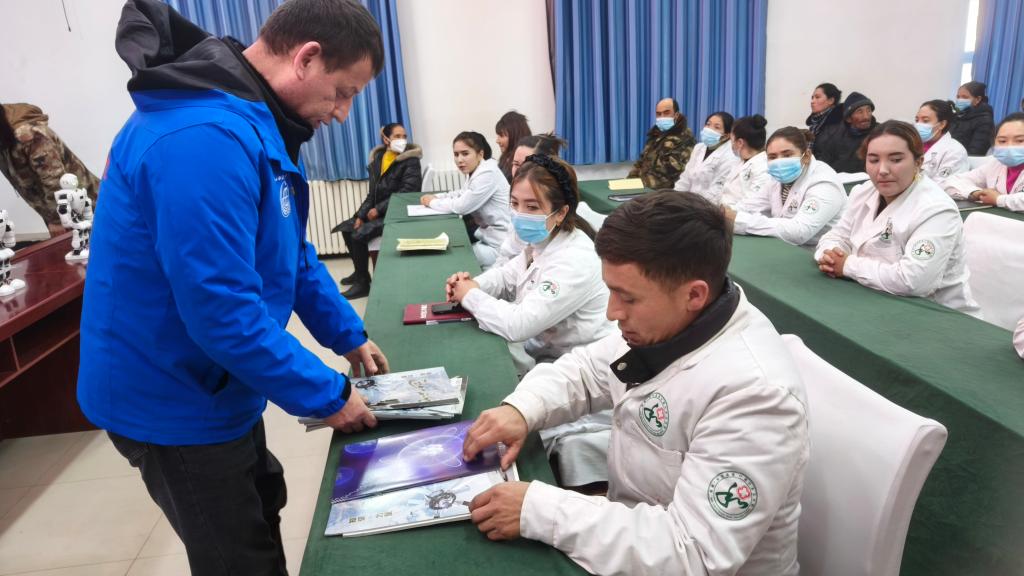 活動中,科協工作人員向農牧民群眾展示了機器人、機器狗等舞蹈表演,還邀請了高校科協副秘書長、新疆維吾爾醫學專科學校公衛主治醫師木海熱姆·杰力力和主治醫師講師努爾麥麥提·麥麥提進行了健康科普講座。講座內容涵蓋了應急救護、健康飲食、常見疾病等方面,并為群眾進行維吾爾醫學診脈,為群眾免費檢查身體,解答群眾對健康方面的疑問。和田地區科協工作人員向山區農牧民群眾發放了《知識與力量》《科學與生活》《農牧民科學素質讀本》等科普書籍共計300余冊。