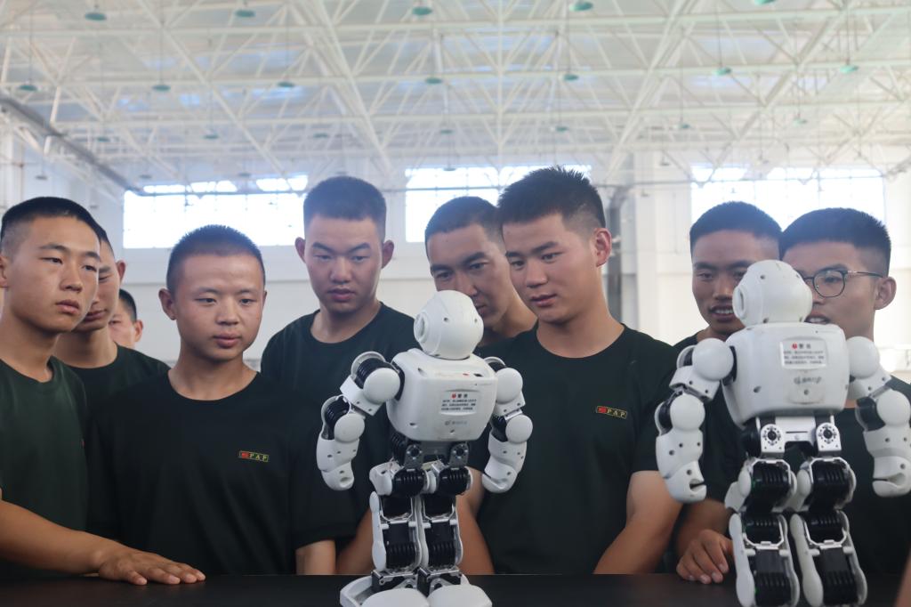 阿爾法機器人有17個關節,自由度大且可擴展,可輕松完成舞蹈、拳擊、形體表演等多種復雜的動作,由于采用了國際領先的可自動感知身體平衡狀態的三軸陀螺儀傳感器,也使得阿爾法機器人擁有極佳的重心感知度。活動中,官兵們對阿爾法機器人產生了濃厚的興趣,紛紛詢問機器人的構造原理,動力驅動程序等知識,科技志愿者們也對機器人的運動原理等進行了介紹。