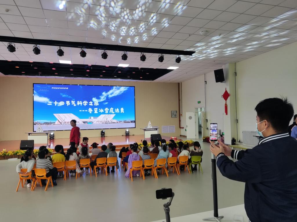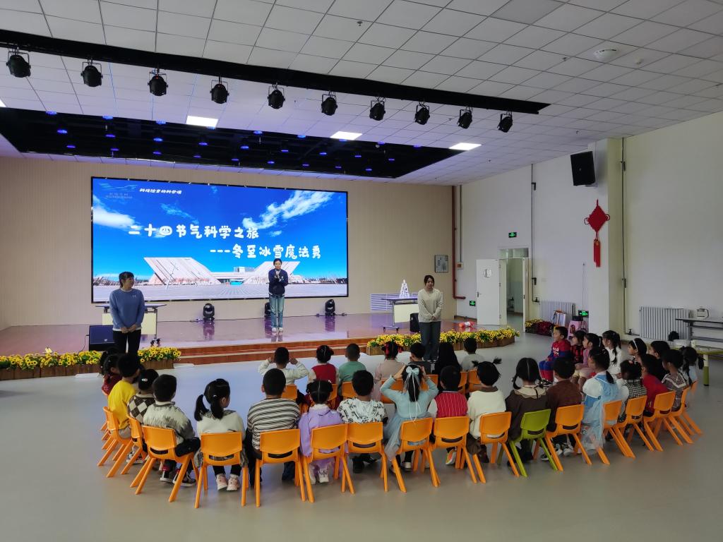活動(dòng)現(xiàn)場,孩子們迫不及待地踏上了冰雪科學(xué)的奇妙之旅??萍拣^輔導(dǎo)員以一場充滿動(dòng)感童趣的“冬至”律動(dòng)兒歌活躍開場,讓孩子們走進(jìn)了節(jié)氣的科學(xué)世界。這不只是一場科學(xué)實(shí)踐,更是一場科學(xué)啟蒙,讓孩子們了解到冬至不僅僅是傳統(tǒng)節(jié)氣,更是大自然的節(jié)律。