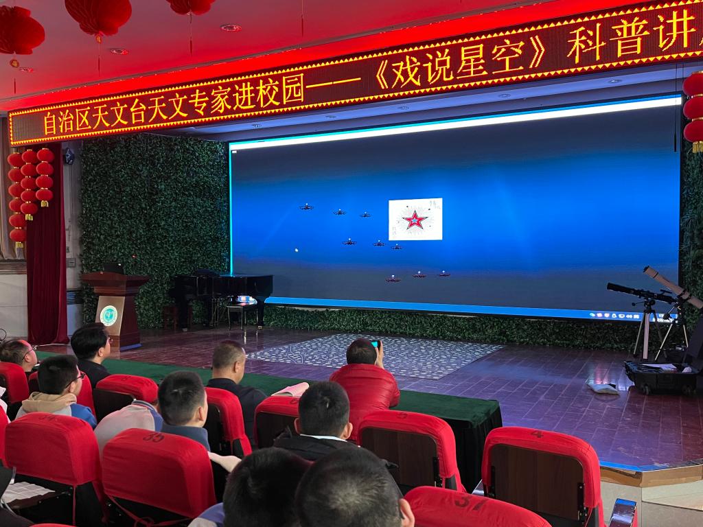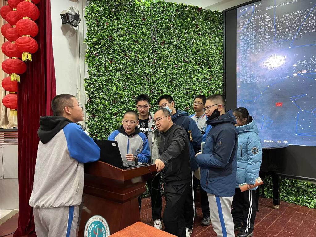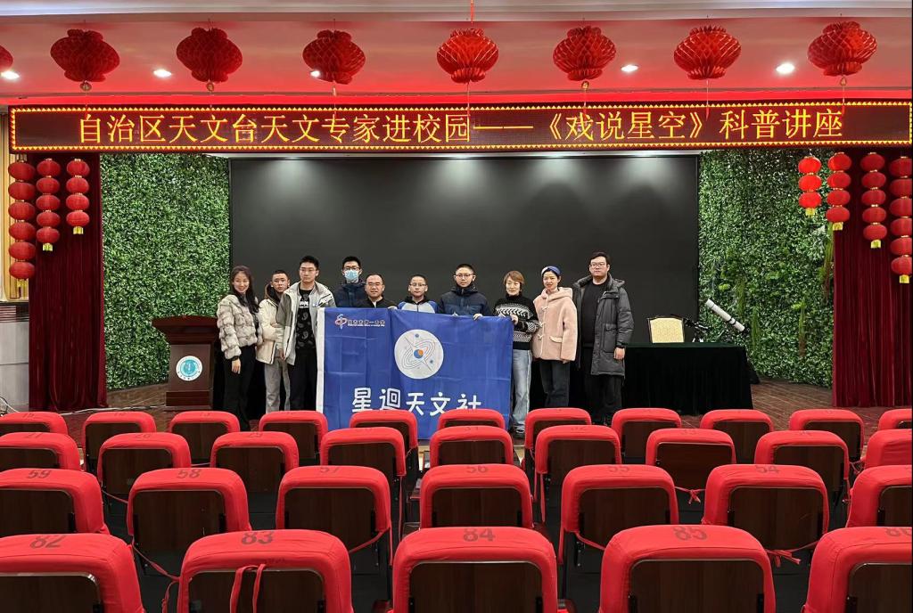 近期,自治區天文臺專家宋華剛博士一行蒞臨昌吉市第一中學,參觀了提升改造后的校園新貌并指導學校青少年科技創新教育工作,為昌吉市第一中學星迴天文社的成立進行授旗儀式,并為一中學子帶來一場題為《戲說星空》的天文科普講座。