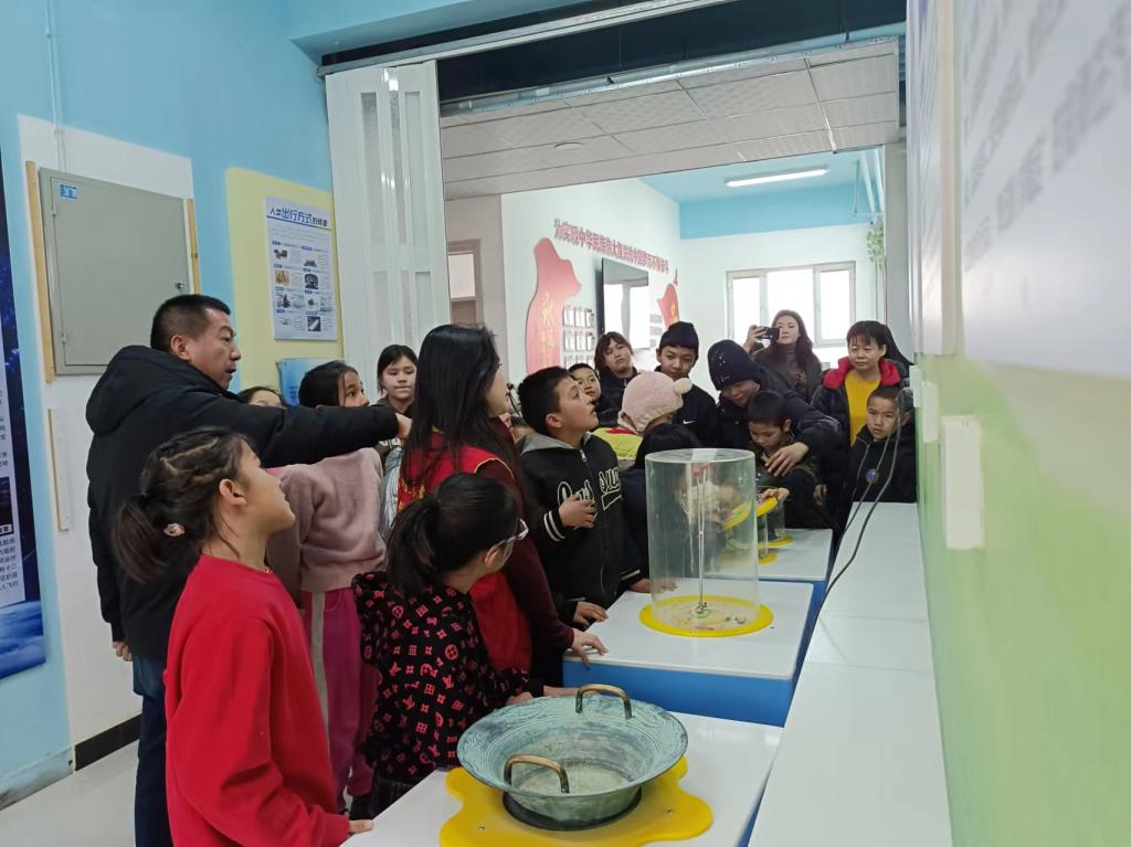 在鄉村科普館“紅領巾小課堂”上,返鄉大學生們帶領孩子們參觀了鄉村科普館,通過引入簡單的科學知識,讓孩子們了解日常生活中的科學知識,領略科學的神奇與科技的發展,通過現場提問搶答,給孩子們科普科學小常識,激發孩子們對科學知識的興趣,讓孩子們從中體驗并探索科學奧秘。