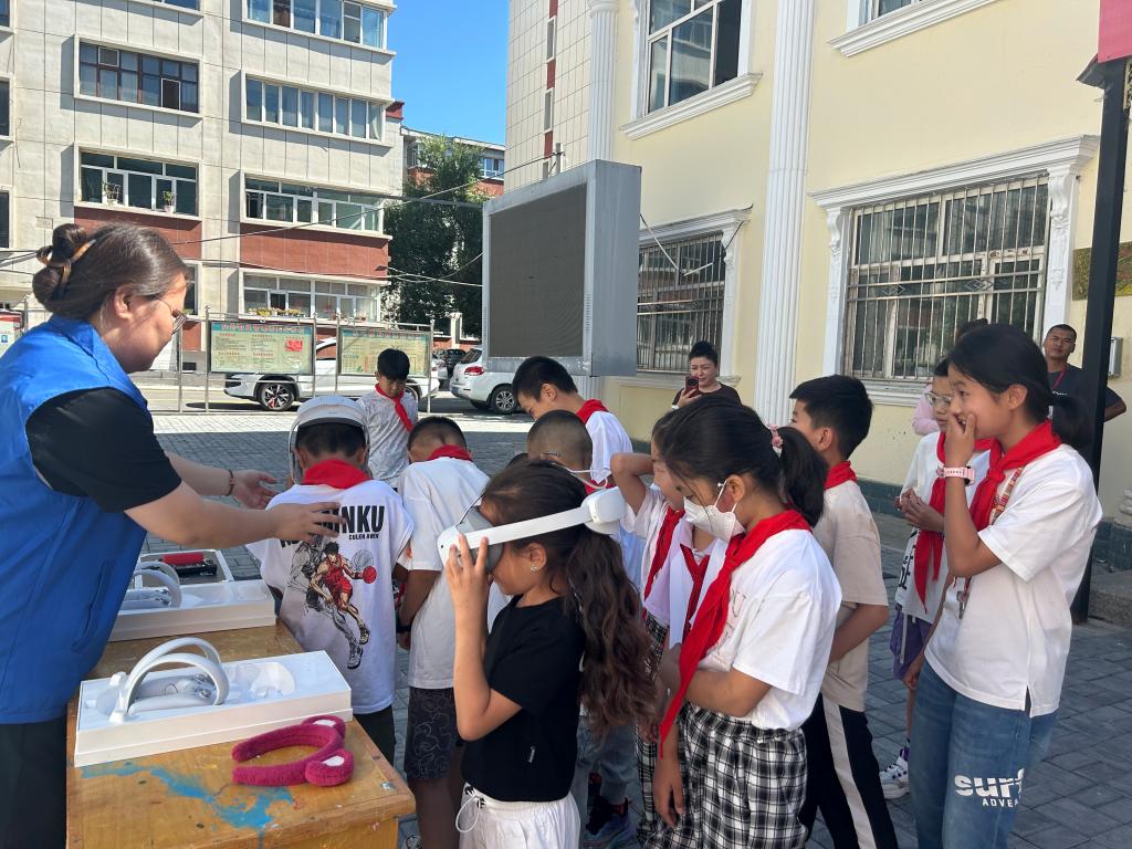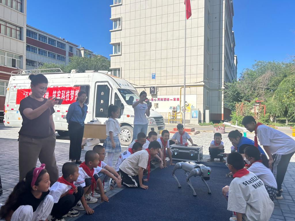 科普大篷車滿載著“電影原理”“無弦琴”“離心力”等涵蓋聲、光、電、磁多種領(lǐng)域的“流動科技館”展具,吸引了社區(qū)居民駐足觀看、詢問,不少居民還積極地親身實(shí)踐體驗(yàn)操作,沉浸式感受科學(xué)的神奇力量。此外,VR眼鏡體驗(yàn)和機(jī)器狗舞蹈表演備受小朋友們歡迎。“我感覺我跟海豚一起在深海遨游哎”體驗(yàn)VR眼鏡的小朋友不禁感嘆,還有與機(jī)器狗一起互動舞蹈的精彩瞬間。