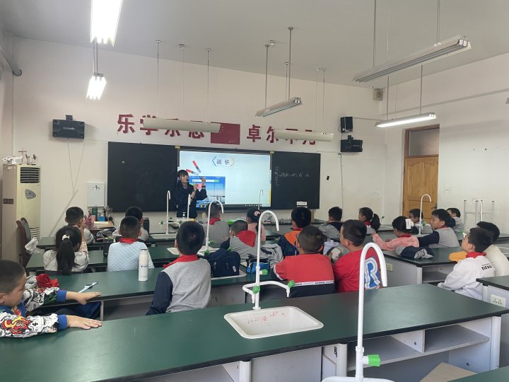 在克拉瑪依市實驗小學的科學教室里,每周四的下午都充滿著激動和好奇,令人著迷的科技館科學課程正在如火如荼地展開。學生們坐在桌前興致盎然地操作著實驗器材,科技館的科普輔導員一邊生動有趣地解釋著科學原理,一邊展示著引人入勝的科學實驗。伯努利的奇跡、電磁鐵的魔力和模型的巧妙拼接技巧,每一個實驗都點燃了學生們的好奇心。這個課堂仿佛是一場科普的盛宴,帶領孩子們踏上一段奇妙的科學之旅,也見證了他們科學素質的成長。這就是克拉瑪依科技館走進校園助力“雙減”的生動實踐。