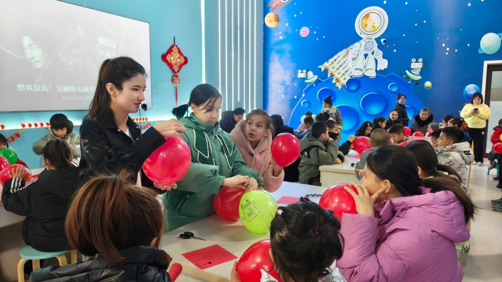 活動伴隨著民間藝人的精彩彈奏表演開始,參與觀眾通過觀看龍年科普視頻,領略了中華傳統文化的魅力。活動中科技輔導員老師們通過有獎問答互動環節向觀眾科普了龍年的來歷、十二生肖的故事等與春節相關的傳統文化知識,并向小朋友們展示了“扎不破的氣球”“火山噴發”等科學小實驗,激發了孩子們對科學實驗的濃厚興趣,大家還制作了新年剪紙,展現了對美好生活的向往。最后,小朋友們在心愿墻上寫下了自己的心愿。