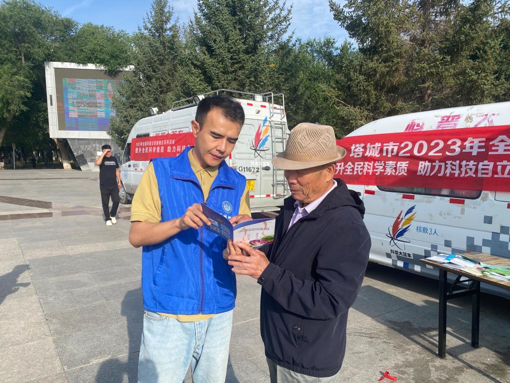 8月31日上午,在第17個“全民健康生活方式日”來臨之際,塔城地區(qū)衛(wèi)健委、地區(qū)疾控中心,地、市科協(xié),地區(qū)少數(shù)民族科普工作隊聯(lián)合在塔城市人民廣場開展“‘三減三健’從我做起健康”科普宣傳義診活動。