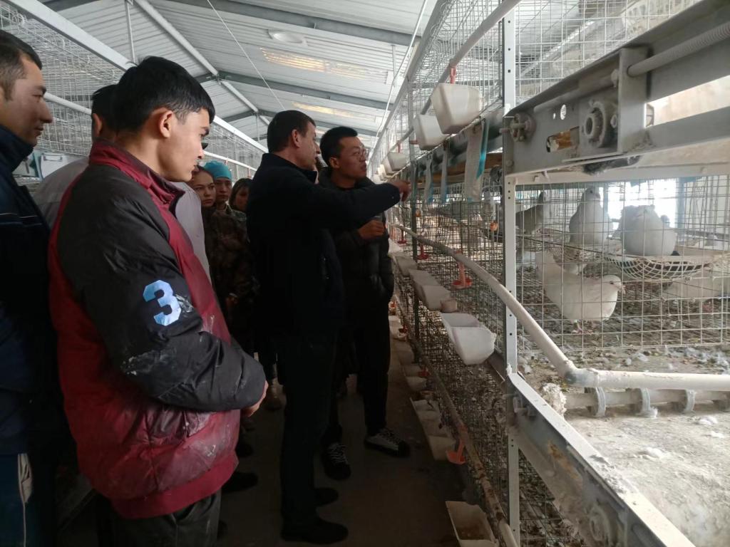 在墨玉縣藍海鴿業繁育基地,該基地聘請新疆農業大學碩士研究生梁亞飛,梁專家采取“理論+實地”的培訓模式進行授課。專家為前來參加培訓的群眾進行了理論講解,讓農牧民了解鴿子養殖的項目前景、鴿子的生活習性、生長環境、飲食結構、管理條件、疾病防控等知識,并帶領大家到示范基地實地學習鴿子養殖技術。